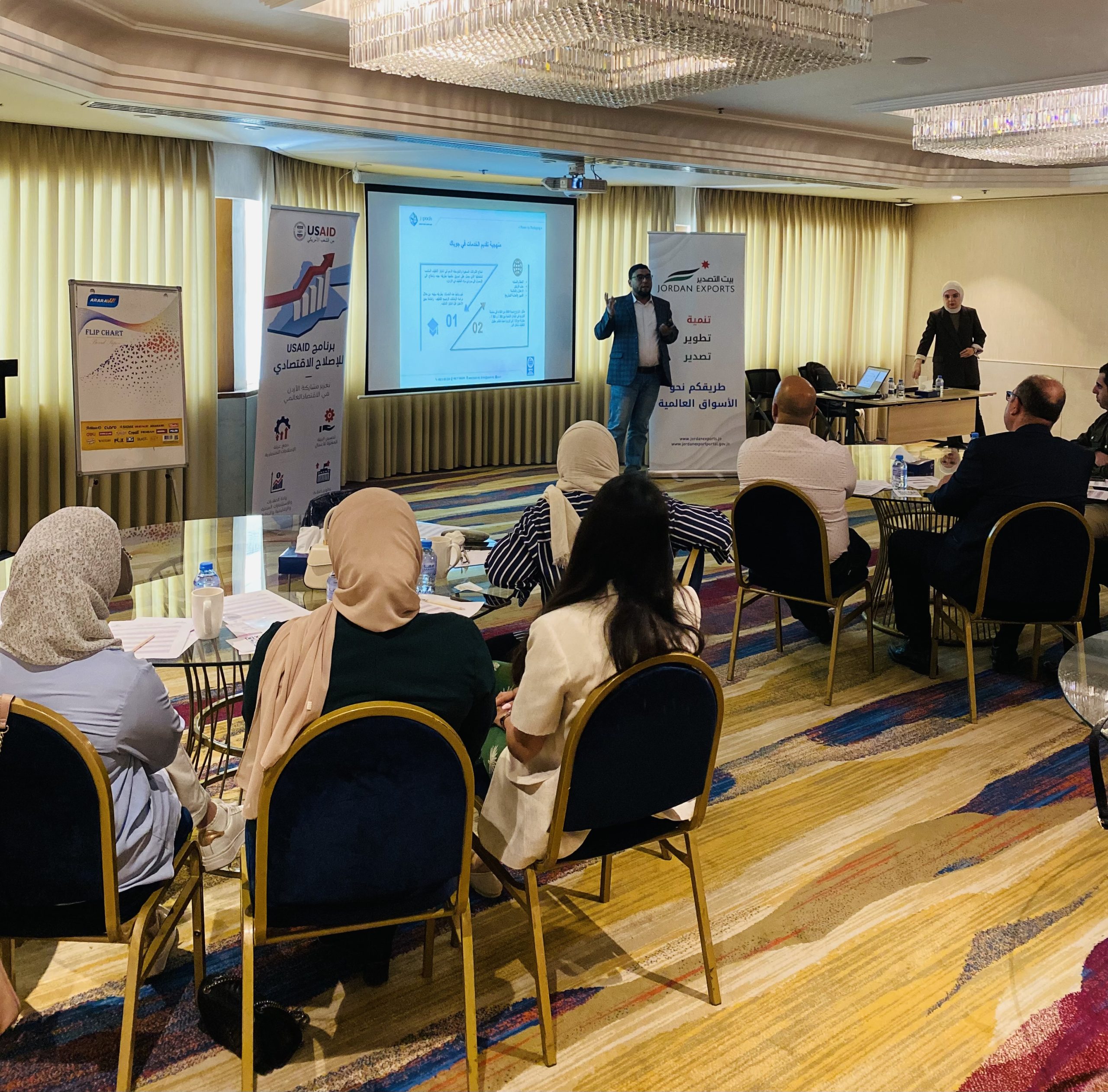 The Importance of Packaging in Exports Promotion” is the training workshop organized and implemented by JORDAN EXPORTS (JE) in collaboration with the National Packaging Center (JOPACK). The training workshop which has been held on April 24, 2024, at the Ayass Hotel, targeted Jordanian exporters, companies, and factories interested in enhancing their skills and knowledge in export-related matters. This initiative yearns to explore regional and international markets, looking for promising opportunities to local products outside Jordan. The workshop aimed to train Jordanian exporters on best practices related to packaging to increase the promotion of Jordanian exports. Packaging plays a crucial role in promoting products; hence the workshop addressed several key topics related to the importance of packaging for various industries and its impact on product promotion and consequently, export growth. Additionally, the workshop covered other related topics such as factors for successful export packaging design and design strategies to achieve success in international markets.